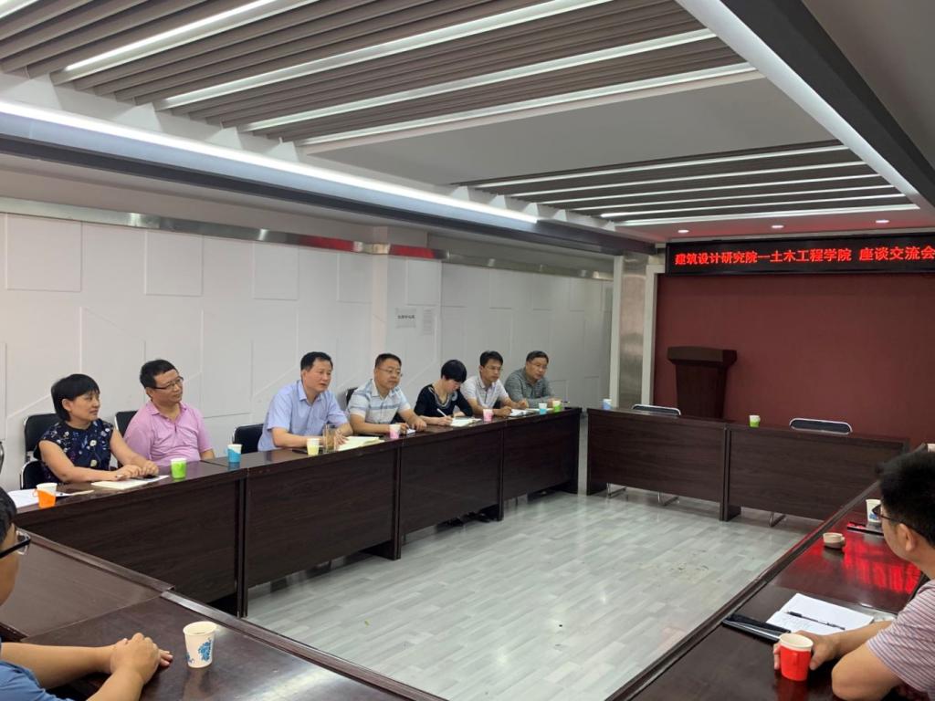 张永胜介绍了建筑设计研究院的业务范围、资质等级及战略规划,重点介绍了建筑设计研究院在装配式建筑、BIM技术、绿色建筑、消防审查等新兴领域方面的进展和思路。他希望结合学院的优势课题方向,共同开展社会服务和科学研究,承担重大、重点项目,促进产教融合,推进重大技术创新、自主创新,加强科技人才培养体系建设,为我校推进“双一流”建设和学科发展、为全省住建事业持续高质量发展贡献力量。刘亚东、赵斌和李文雁分别从各自分管的角度对设计院校企合作原则和合作方式进行了介绍。