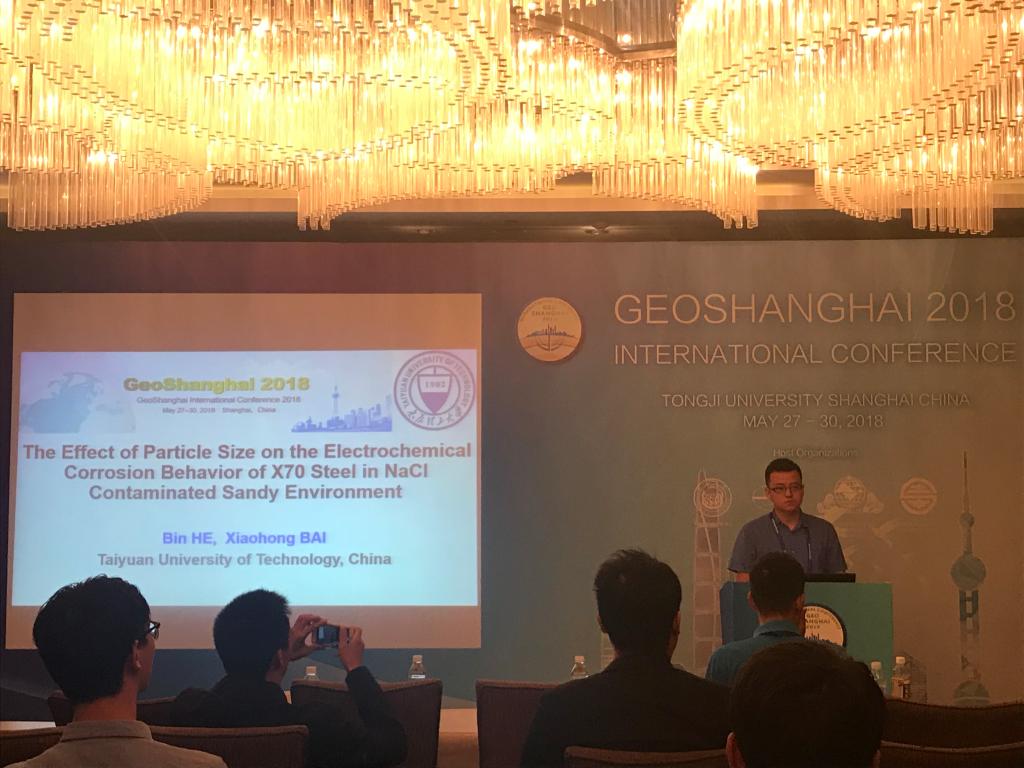 2018年5月27日—30日,何斌博士、谢瑞珍博士生、王效渊博士生、王景霞硕士生参加了在上海WH Ming Hotel举办的4th GeoShanghai 2018 International Conference。来自十多个国家的三百余名代表出席了本次会议。在本次会议上,何斌博士做了题为《The Effect of Particle Size on the Electrochemical Corrosion Behavior of X70 Steel in NaCl Contaminated Sandy Environment》的分会场(Geoenvironment and Geohazards)学术报告,并与参会国内外高校专家和多家企业技术人员进行了学术交流,同时就永利集团官网在环境岩土工程方面的研究进行了交流与学习,提升团队在污染土腐蚀性研究方面的知名度。