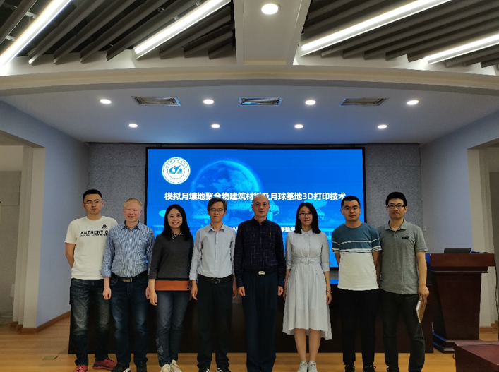 首先,张翛教授对李峰教授及团队成员的到来表示热烈的欢迎,并介绍了李峰教授的职业、教育背景、研究方向、承担项目、学术荣誉、社会兼职等情况。讲座伊始,李峰教授就深空环境下月壤地聚合物对应的研究背景,研究方向进行了系统的介绍。随后周思齐博士就增材模拟月壤地聚合物制备以及流变时变行为调控性能进行了汇报,以特定产地、成分相似的地球火山灰作为模拟月壤,开展模拟月壤地聚合建筑材料的制备和性能研究;同时对于深空环境下月球基地建筑材料3D打印建造方案进行了介绍,探索利用地聚合物原位建造月球基地的可行性。