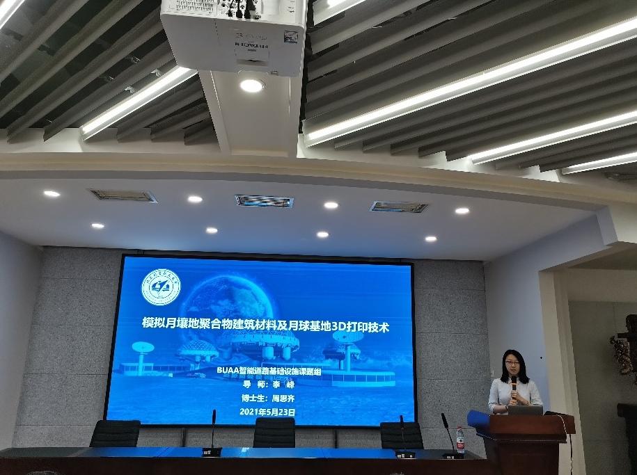 2021年5月23日,应yl23411永利集团官网邀请,北京航空航天大学交通科学与工程学院李峰教授团队来访我校进行学术交流。李峰教授及其团队成员周思齐博士在博学馆A座五层结构报告厅作了题为“模拟月壤地聚合物深空基地建造材料与技术”的学术报告。学术报告由张翛教授主持,永利集团官网200多名师生参加了报告会。