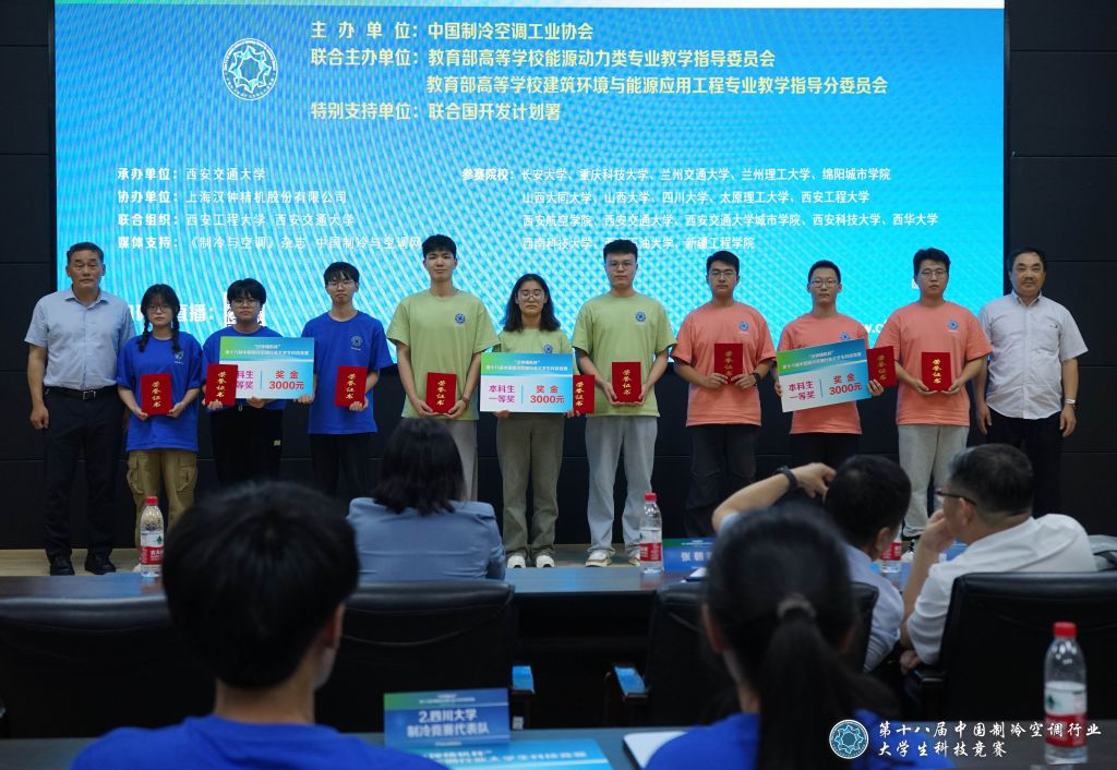 7月16日至17日,“汉钟精机杯”第十八届中国制冷空调行业大学生科技竞赛决赛在西安交通大学顺利举行。永利集团官网教师张兴惠、贾欣雨指导的由建筑环境与能源应用工程专业2021级本科生王家农、黄家瑞、方宇豪组建的“凭虚御能”队荣获本科生一等奖。