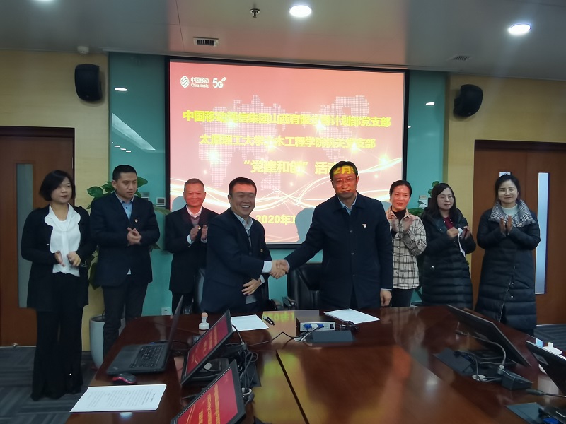 2020年12月9日,院党委与山西移动计划部开展党建合创活动,签约仪式在山西移动公司办公楼二层会议室举行。山西移动公司计划部党支部书记朱壮军、院党委书记周伟、副书记芦倩和双方党员代表参加。