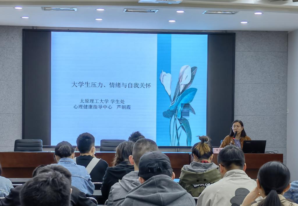 4月21日上午,永利集团官网面向全校学生在博学馆A座五层会议室举办了大学生心理健康专题讲座交流会。会议特别邀请了国家心理二级咨询师、山西省心理卫生协会常务理事、yl23411永利集团官网心理健康指导中心芦朝霞老师做了题为“大学生压力、情绪与自我关怀”的讲座交流。辅导员陈秀梅老师主持了本次讲座。