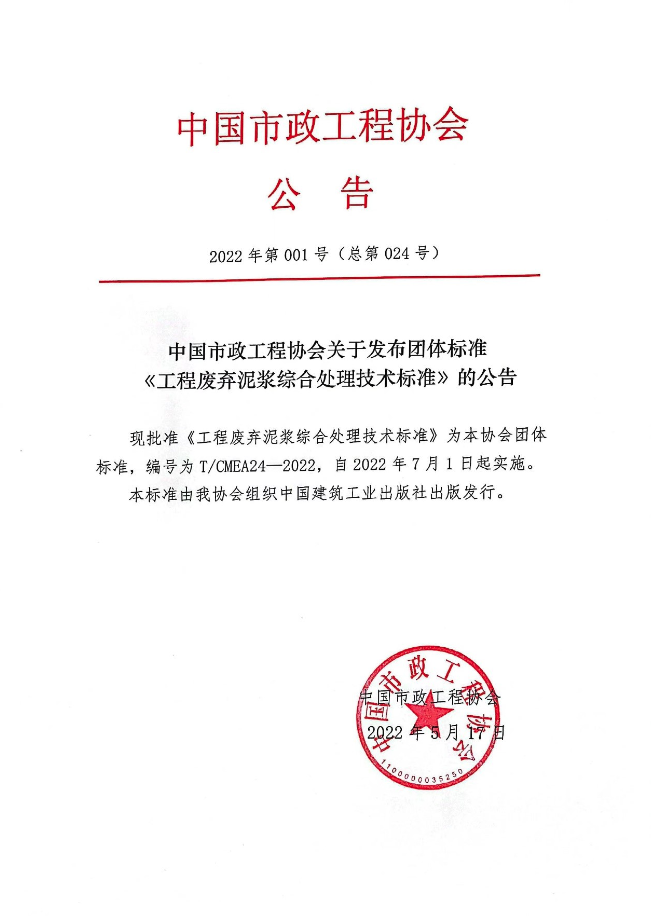 为推动上下游产业链的融合创新,促进新技术、新产品的应用,提高我国废弃泥浆的综合利用水平,经中国市政工程协会批准,由中建工程产业技术研究院有限公司、中建安装集团有限公司、台州市鼎正再生资源回收有限公司、yl23411永利集团官网、中建三局集团(深圳)有限公司、深圳大学、浙江大学、中水电四局南方(珠海)工程有限公司、中国建设计研究院有限公司等单位编制团体标准-《工程废弃泥浆综合处理技术标准》。