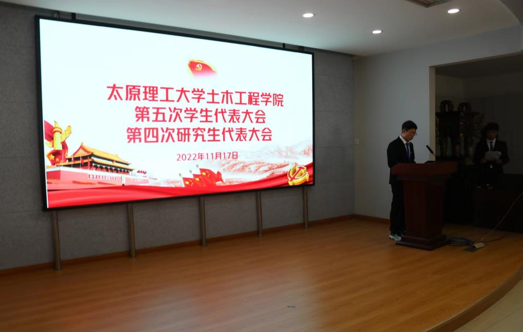 在高亢嘹亮的国歌声中,本次大会正式拉开帷幕。大会伊始,筑梦者部部长王一洲作《大会筹备工作情况报告》,体联部部长张泽凯作《代表资格审查报告》。随后,大会通过了主席团、执行主席的建议名单,并且经院学生会,研究生会协商提名,表决通过了大会主席团、执行主席名单,冯辉辉代表yl23411永利集团官网第五届学生、第四届研究生委员会向大会作工作报告。
