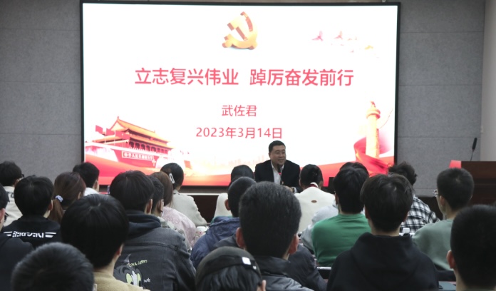 为深入学习宣传贯彻党的二十大精神,切实加强对广大学生的思想政治引领,扎实落实立德树人根本任务。3月14日19:00,党委书记武佐君以“立志复兴伟业 踔厉奋发前行”为题,为学院120余名学生党员代表、入党积极分子、学生干部和班级学生代表讲授2023年春季学期“开学第一课”,勉励同学们坚定不移听党话、跟党走,立志成为堪当民族复兴大任的时代新人。
