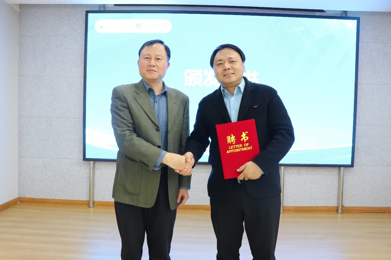 会上董晓强为于伟颁发了“yl23411永利集团官网生涯规划与就业指导校外指导教师”的聘任证书。