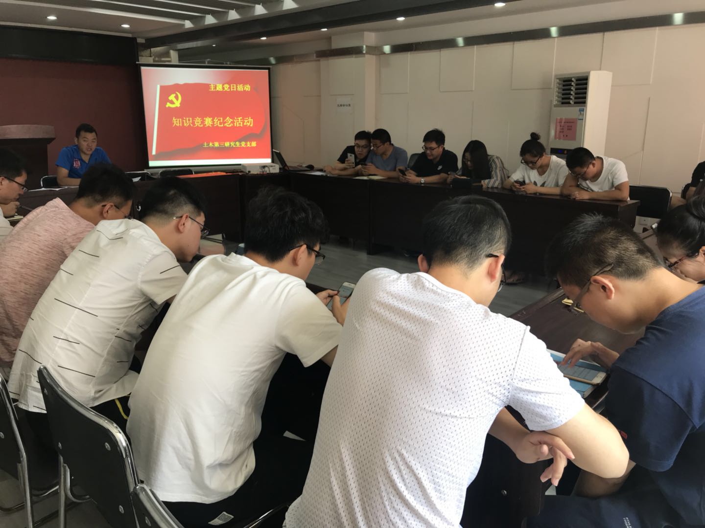 为更好地发挥党组织的政治核心作用和党员的先锋模范带头作用,积极推动学院各项事业科学发展,响应学院党委“七•一”前后在全校范围内组织开展庆祝建党97周年系列活动的要求。2018年6月28,建工学院土木第三研究生党支部在博学馆五层会议室召开了庆祝建党97周年主题党日活动。本次活动由支部书记何斌同志主持,共有24名同志参加,其中正式党员17名,积极分子7名。