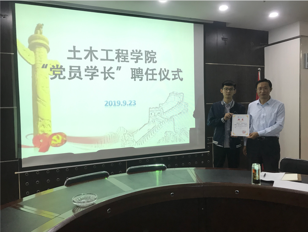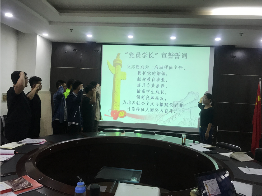 首先,巴大志对学生党员积极参与学院学生工作给予了充分的肯定,表达了学院对各位同学的信任和信心,就学生党员如何在基层党建中发挥好思想引领作用,帮助大一学生尽快适应大学生活,做好优良校风院风的传承,将党建与团建结合起来,做好学院和学生的桥梁作用等方面进行了讲话。随后,周伟依次为本次聘任的12名“党员学长”颁发了聘书,都静带领新聘任“党员学长”进行宣誓。