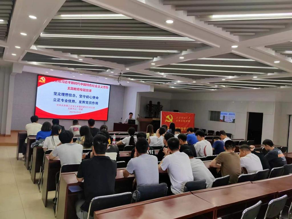 为深入开展学习贯彻习近平新时代中国特色社会主义思想主题教育和学习习近平总书记考察山西重要指示精神,2023年6月9日上午10:30,土木第四研究生党支部在博学馆A座五层会议室通过现场会议的方式,支部书记邱斌同志为支部全体党员讲授“坚定理想信念 坚守初心使命 立足专业优势 发挥党员作用”的专题党课。