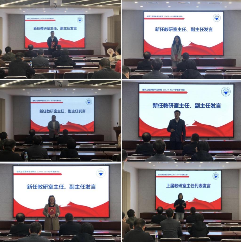 武佐君代表学院向新任教研室主任、副主任表示祝贺,并提出殷切希望。他强调:本届教研室主任的选任,是学院提高本科教学管理、教研组织、教学改革及专业建设的组织保障力度的重要举措。学院今后将进一步加强建设,不断夯实系部在学科专业建设、人才培养、师资队伍建设中的基础性功能和作用,进一步建立健全教学保障体制机制。希望新任教研室主任、副主任继承、发扬好百廿土木的优良传统,认真履行好岗位职责。