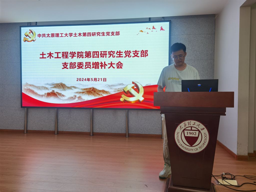 为进一步加强党组织建设,充分发挥基层党组织战斗堡垒作用。因升学、工作等原因,李赟和王浩宇两位同志无法继续履职,为了保证支部工作的有序开展,经支部委员会讨论研究,报yl23411永利集团官网党委批准,中共yl23411永利集团官网土木第四研究生支部委员会于2024年5月21日在博学馆A座五层会议室召开党员大会,补选党支部委员。会议由王浩宇同志主持。大会应到正式党员45名,实到41名,符合大会的相关要求。