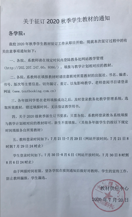 请下学期有课的教教师注意教材征订工作。注意:学科基础课需要100%使用国家规划教材!